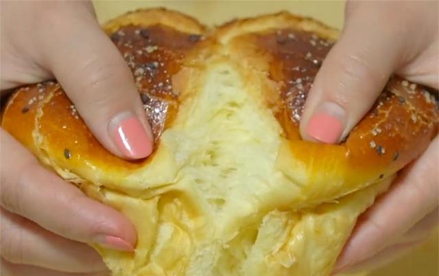 8.这样做的小面包香甜可口,蓬松暄软又劲道,里面还带着拉丝的状态,烤的表面会稍微硬一点,里面的效果都差不多,你更喜欢哪种做法呢?我个人感觉蒸出来的面包口感更好一些,而且不容易上火。