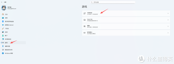 打开“设置”,点击“游戏”菜单,再选择“全屏体验”,进入相关配置页面。