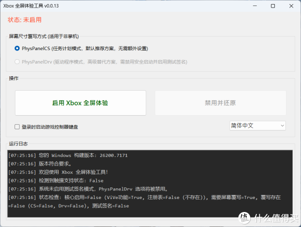 启动程序后,工具会自动检测您的 Windows 系统版本,以确认是否满足启用 Xbox 全屏游戏界面的条件。确认系统检测无误后,点击“启用 Xbox 全屏体验”按钮,并按照提示重启电脑以完成设置。