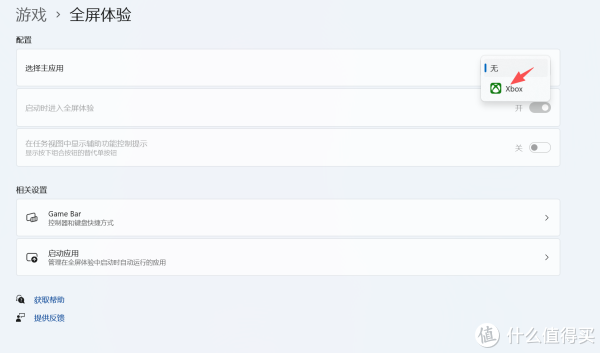 在“选择主页应用”下拉菜单中,选择 Xbox,然后开启“启动时进入全屏体验”选项。设置完成后,你的 Windows 设备将在下次开机时自动进入专为游戏优化的 Xbox 全屏界面。