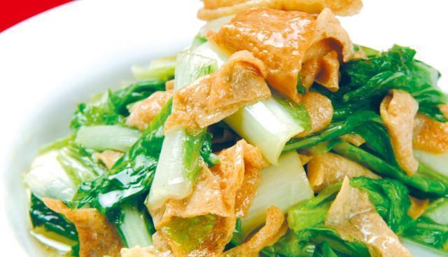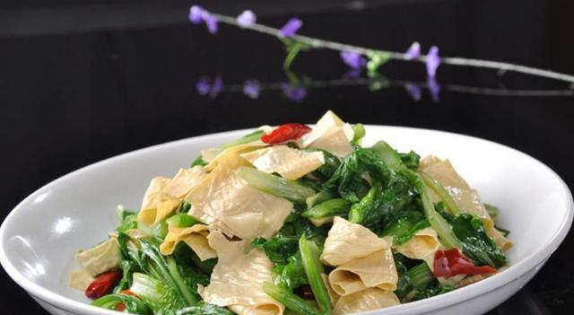 6. 加入小白菜:把焯水的小白菜加入锅中,与豆皮一起翻炒均匀。注意翻炒时不要把小白菜炒得过软,保持菜叶的爽口感。