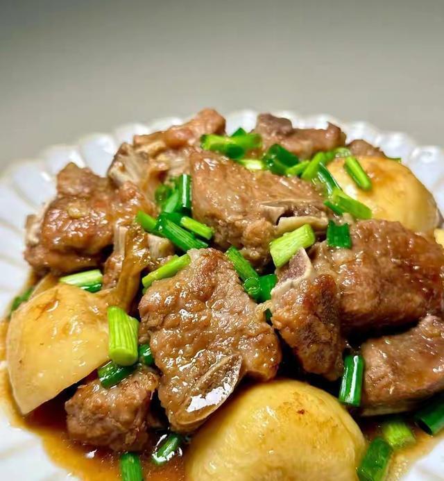 6. 放入茨菇块,继续焖煮15分钟,直到茨菇软烂、排骨入味,最后开大火收汁即可。