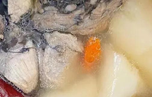 3、时间到,再放入胡萝卜和板栗,继续炖煮半个小时。