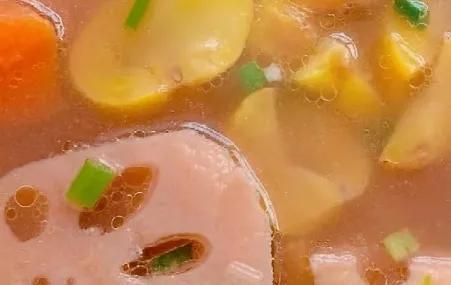 1、莲藕和胡萝卜削掉外皮,清洗干净切成小块。花生清洗干净,板栗去壳洗净备用。