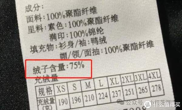 这里要注意,「绒子含量」和「充绒量」不是一回事,前者是指这类羽绒在填充物中所占的百分比,用百分数表示。