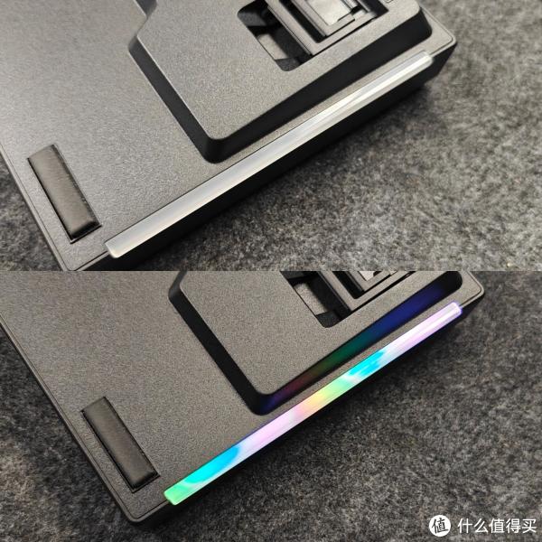 侧边还带有一条灯带,悬浮光效在暗光环境下格外有氛围感,无论是白天办公还是夜晚码字,它都能成为桌面上的一道风景。
