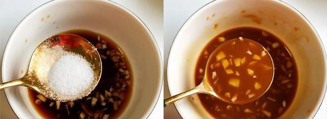 1、第一步先调个碗汁。找个小碗,往里头放上一勺蒜末、两勺生抽、一勺蚝油、一点点白糖、盐、白糖、盐、半勺淀粉,把这些调料在碗里搅拌均匀,这碗汁就算调好了。