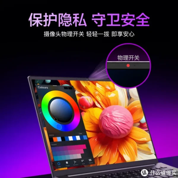 无界14S斗战版的键盘设计和14X相似,都经过了重新布局,方向键同样是全尺寸。屏幕上方的摄像头也加入了防偷窥的物理开关,可惜不支持人脸识别能力。