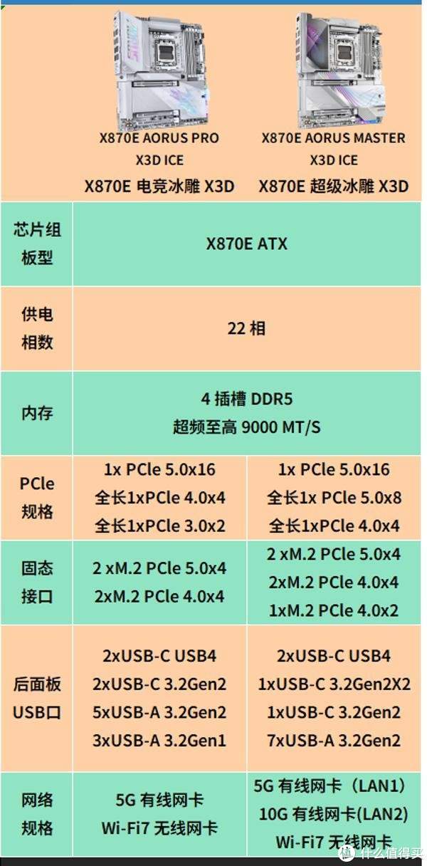 技嘉X870E AORUS PRO X3D电竞冰雕与X870E AORUS MASTER X3D超级冰雕的区别