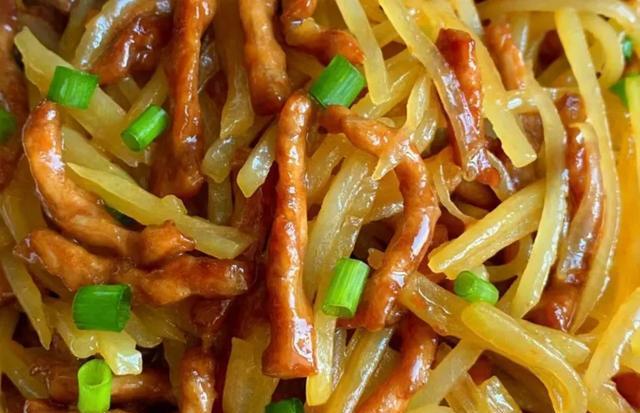 4、最后加入炒好的肉丝一起翻炒均匀入味,即可出锅开吃。