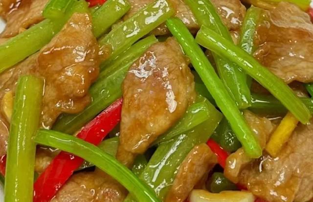准备食材: 瘦肉、芹菜、红椒丝、姜蒜末。