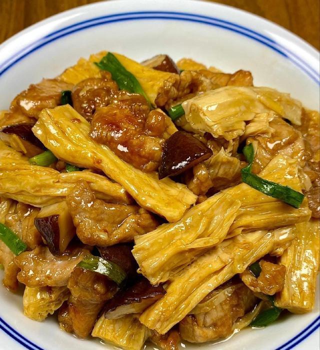 3. 倒入腐竹段翻炒均匀,加入所有调味料快速炒匀。
