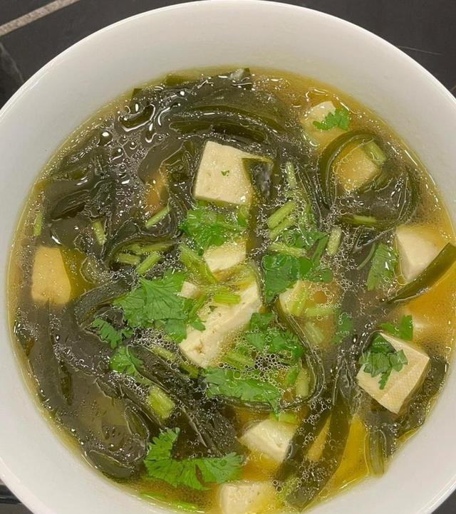 3. 加入豆腐块,继续煮5分钟,加盐调味,淋上香油即可。