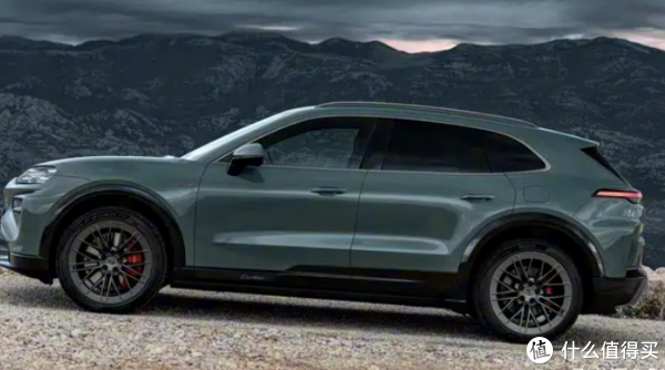 * 侧面轮廓: 延续轿跑SUV流线造型,修长引擎舱、溜背式车顶与立体腰线相得益彰。黑色宽体侧裙、渐进式轮拱、22英寸密辐轮圈及碳陶制动系统,完美平衡跑车运动感与SUV全地形能力。车身尺寸达4985/1980/1674毫米,轴距增至3023毫米(较燃油版提升130毫米),显著优化座舱空间。