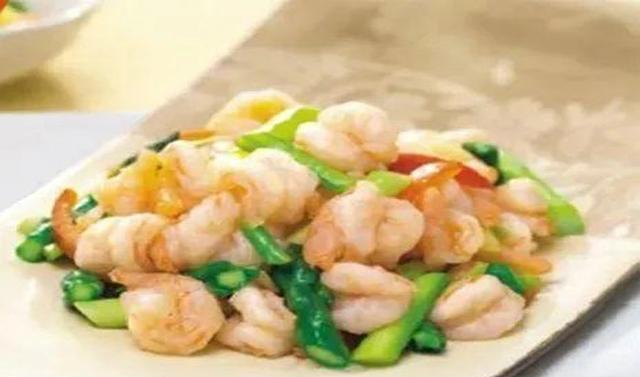 3、虾仁用腌料腌制,芦笋和小料加工备用;