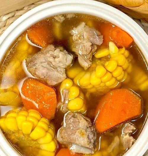 3. 将猪龙骨、玉米、胡萝卜、姜片放入锅中,加足量清水,大火烧开后转小火慢炖 1.5 - 2 小时,加盐调味即可。