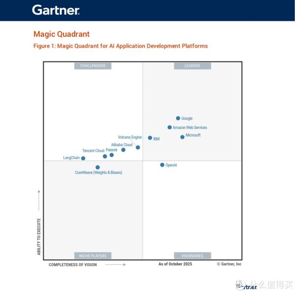 日前,Gartner®发布2025年度全球《AI应用开发平台魔力象限》:凭借豆包大模型和火山方舟大模型服务平台 ,火山引擎领跑全球挑战者象限,在中国厂商中位居第一,阿里云、腾讯云也入围挑战者象限。