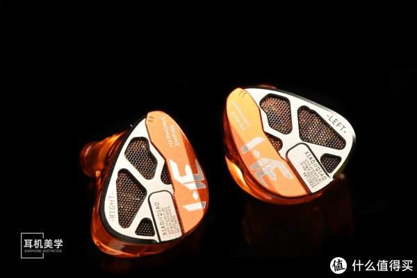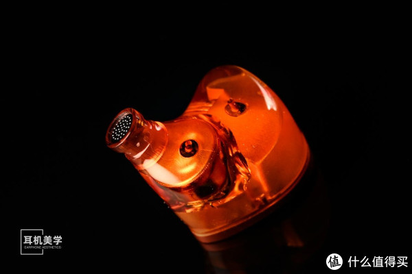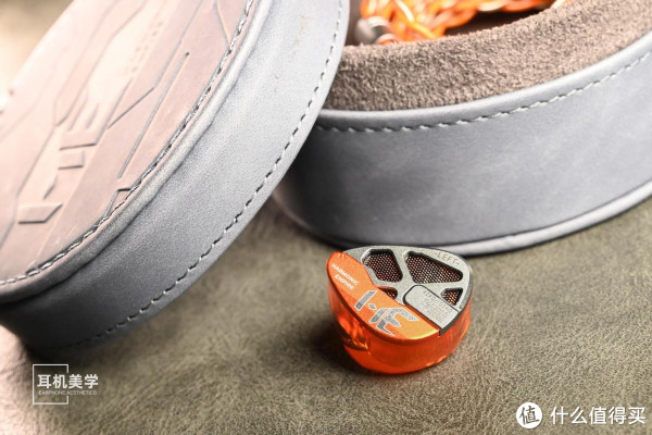 为了契合赛博朋克的主题,小乔耳机本体上融入了不少机甲元素,造型相对硬朗。它采用材料拼接设计,将一整块精雕铝合金面板与树脂腔体相结合,面板上做了多处镂空,内嵌黑色网罩。我手里的这条是橙色款,选这款一来是因为我个人很喜欢橙色与枪灰色的搭配,二来是橙色透明的腔体,看起来很像科幻作品中的培养仓,内嵌着那颗石墨烯振膜单元,质感十足。