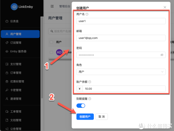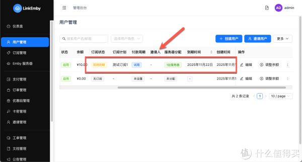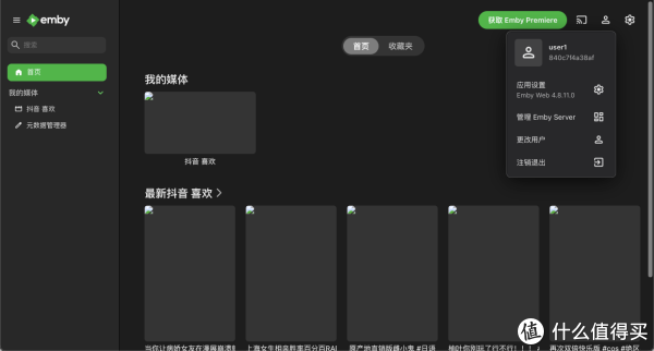 来到 Emby 的用户管理,能看到已经自动创建了用户