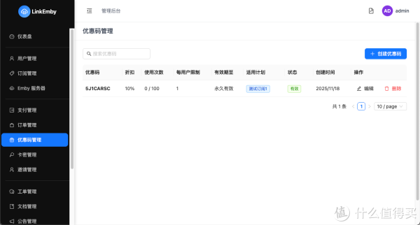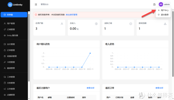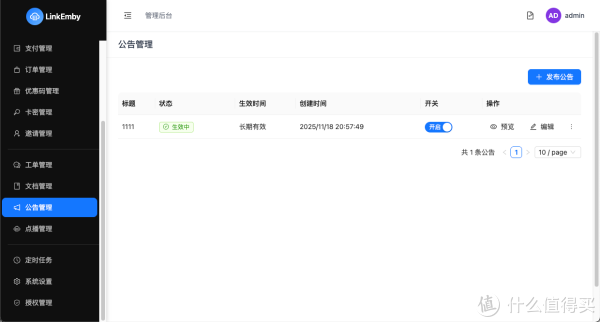 LinkEmby 是一款功能全面、界面友好的 Emby 订阅管理解决方案,集用户管理、订阅计划、支付集成、工单系统等模块于一体,适合希望将 Emby 服务商业化的个人或小型团队。不过未授权前,有用户数和服务器数量限制以及部分高级功能需激活,但基础功能已足够满足测试与轻量运营需求。目前这类应用还比较少,有需求的用户可以部署尝试。