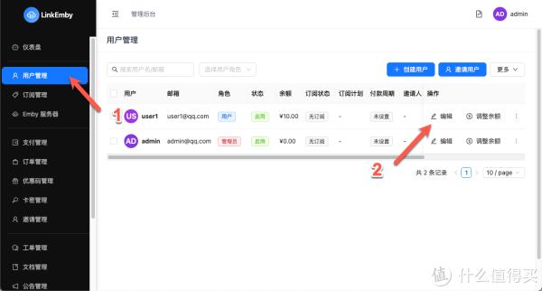 当然管理员后台也能直接设置,来到用户管理,点击编辑前面创建的测试用户