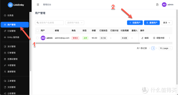 来到用户管理,点击“创建用户”(或者邀请用户)