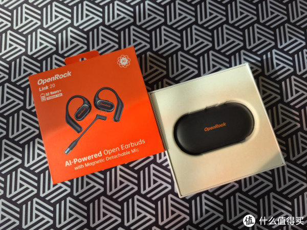 拆开快递时,Link20的包装就让我眼前一亮,简约的红色盒子搭配品牌名称以及耳机的图片,高级感十足,打开后耳机、磁吸咪杆、充电舱、充电线整整齐齐摆放着,配件齐全却不杂乱。