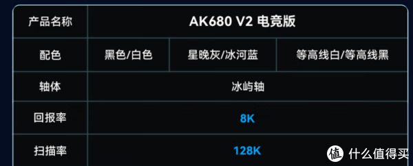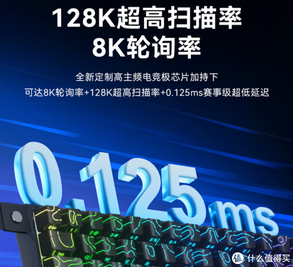 按键扫描率升级为 128KHz,对比之前的 MAX 版本低配只有 16KHz,高配也只有 32KHz算是大提升了。