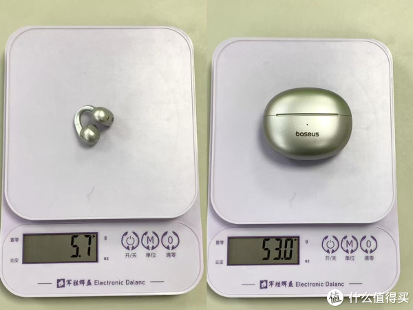 倍思 MC1 Pro 5.7g,结构是 0.5mm 钛合金丝搭配云朵气囊结构,贴合度比漫步者更紧实,跑步时稳定性不错,但夹持感会稍微明显一些,戴两个多小时后耳后会留下压痕。它更像是为短时间佩戴或运动场景做优化,不太适合全天候长时间使用。