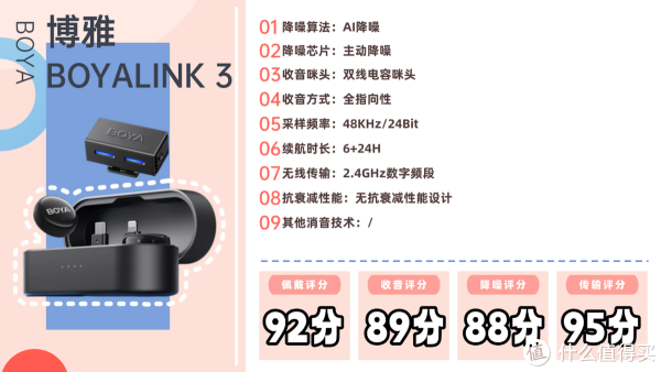博雅BOYALINK 3主打真AI降噪与隐形佩戴体验,9克超轻机身搭配磁吸背夹,佩戴后几乎不影响外观,特别适合新闻采访、街头拍摄等需要低调收音的场景。核心搭载自主研发的AI深度降噪3.0技术,基于70万+噪声样本数据库与DNN芯片,对空调低频声等稳态噪声实现-21dB降噪,对突发掌声等非稳态噪声降噪深度高达-40dB,较传统技术提升300%以上。支持六档增益调节与EQ自定义,可根据场景优化音质,同时具备-12dB安全音轨避免失真,还能实现2发4收多设备协同,最多8台设备同步录音,适配多人拍摄场景。2.4GHz传输稳定无延迟,发射器单次续航10小时,充电盒总续航30小时,兼容多设备且支持边充边用,复杂环境下收音表现亮眼。