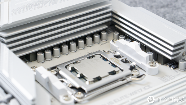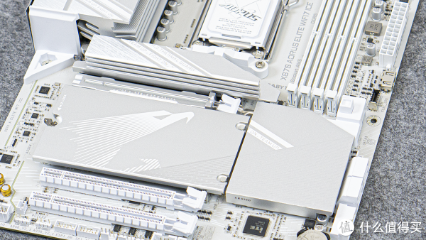 X870冰雕的ICE真不是白叫的,它CPU散热器固定的基座、内存插槽均是纯白的,支持双通道的DDR5内存。关于超频,技嘉在这块主板上还引入了AI判定,稍后我们会与小伙伴们分享。