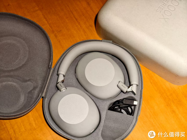 WH-1000XM5不能折叠,是个不大不小的遗憾,这个问题在WH-1000XM6上得到了解决。耳机包的尺寸也比较小巧,日常通勤放在背包里是毫无压力的。配件的话,除了USB A to C连接线,还附送了3.5mm插头的耳机线,可用于耳机没电时有线模式使用。
