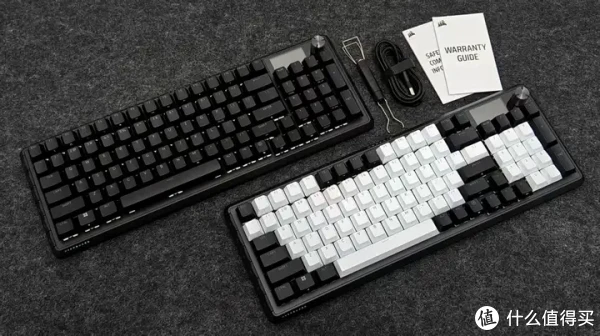 打开海盗船一贯黄黑主题的包装盒,里面除了熟悉的键盘本体,手托,Type-C数据线,说明手册四件套之外,还多了一个拔键拔轴器。