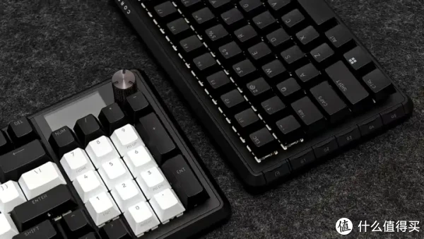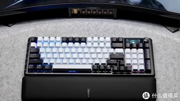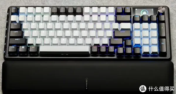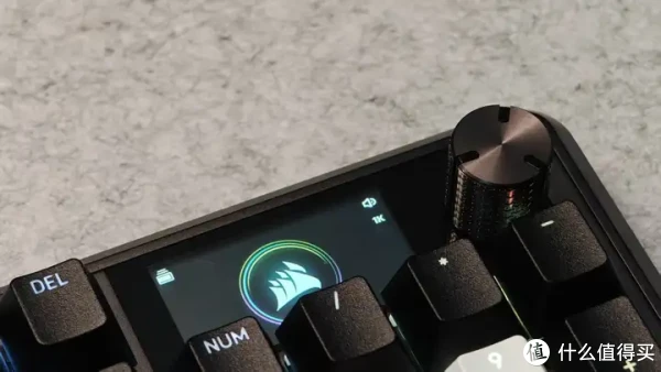 来到正面,先锋96采用了类98键的紧凑布局,和常规98键的区别在于将右上角的三个键改成了LCD屏+多媒体旋钮的组合。