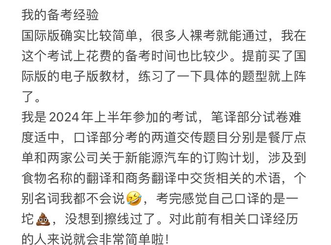 实战练习不仅可以提高翻译速度,还能帮助你更好地掌握翻译技巧。三口备考建议 听力与口语训练:三口考试对听力和口语能力有较高的要求。因此,在备考期间,要每天坚持进行听力训练,如听BBC或VOA的新闻广播。同时,要加强口语练习,可以尝试模仿新闻广播中的发音和语调,提高自己的口语表达能力。