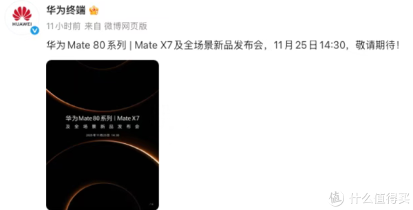 华为正式官宣了 Mate 80 系列 | Mate X7 及全场景新品发布会的时间。