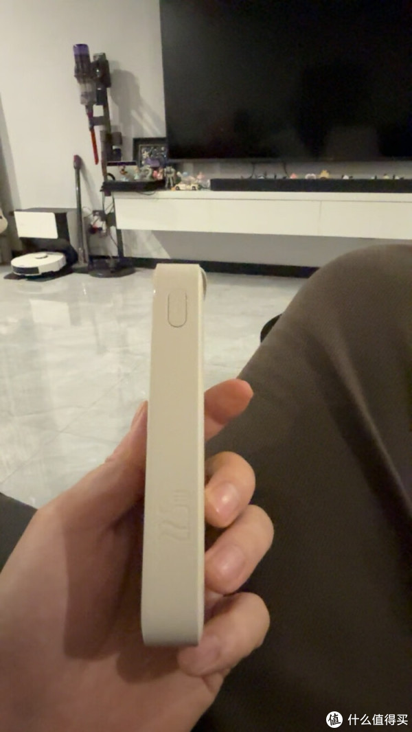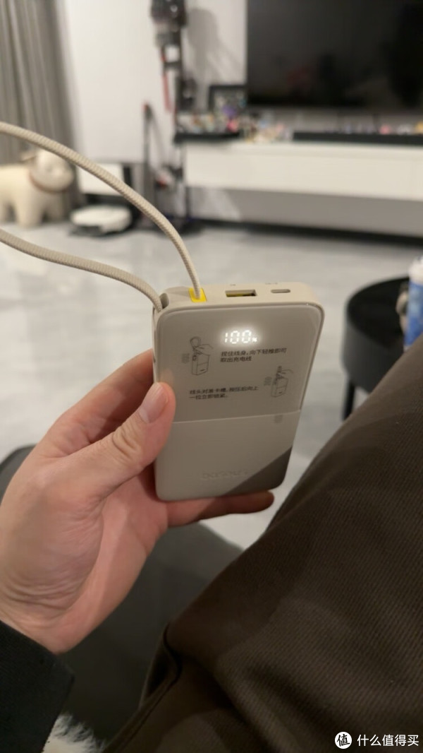 拆开快递,米白色的机身质感高级又低调,拿在手里轻薄得不像10000mAh的移动电源。最吸睛的是自带的编织充电线,采用“收纳式设计”:线身结实耐磨,使用时“捏住线身向下轻推”就能轻松取出,用完后“对准卡槽按压上拉”即可锁紧收纳,整个过程丝滑到让人忍不住反复把玩,彻底告别了我“带线必缠成一团”的糟心过往。
