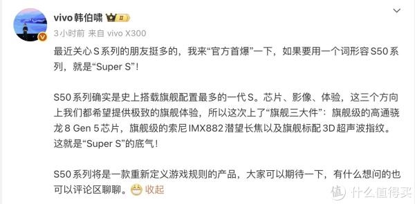 vivo S50系列开启官方预热,带来了期待已久的“旗舰三大件”,从站哥的独家消息来看,该系列正式定档2025年12月份。结合此前的爆料来看,vivo S50系列的提升还是挺明显的,包括影像、性能和体验等等,有需求的小伙伴真的可以稍微等一等。