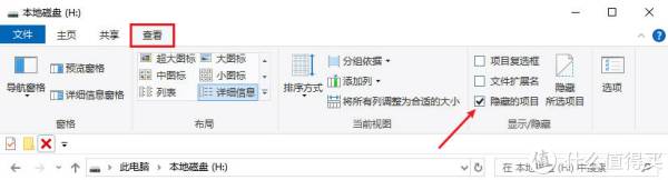 操作:H盘隐藏的文件怎么恢复?打开H盘,点击顶部菜单【查看】→ 勾选【隐藏的项目】。