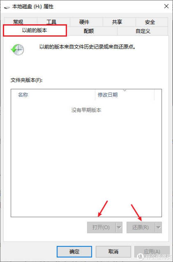 说明:此功能依赖于系统创建的“卷影副本”,如果您未开启H盘的系统保护,则可能无可用版本。