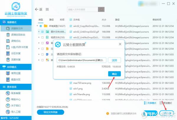 预览:扫描完成后,利用【列表模式】,如文件类型、路径等方式快速快速定位。接着通过【预览模式】预览一下文件。