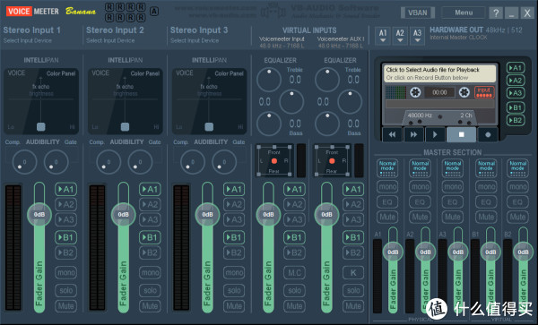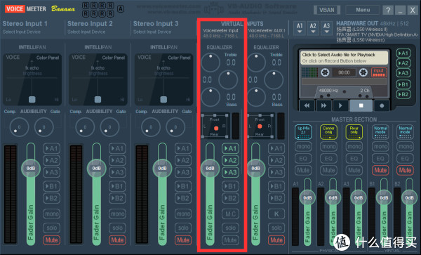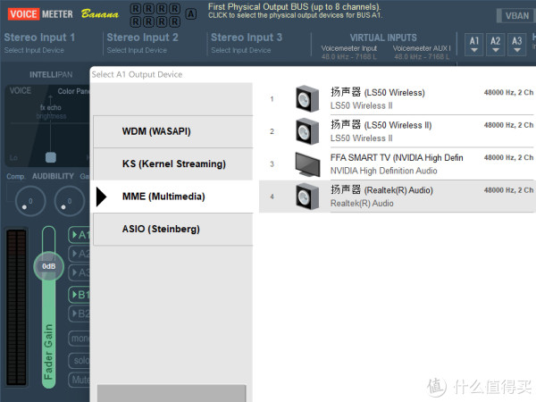 HTPC的优势,就是限制少,Win平台上可利用的软件丰富。例如Vociemeeter,就能将不同品牌,不同型号的音箱组合在一起,搭建出至多7.1声道的环绕音响系统。
