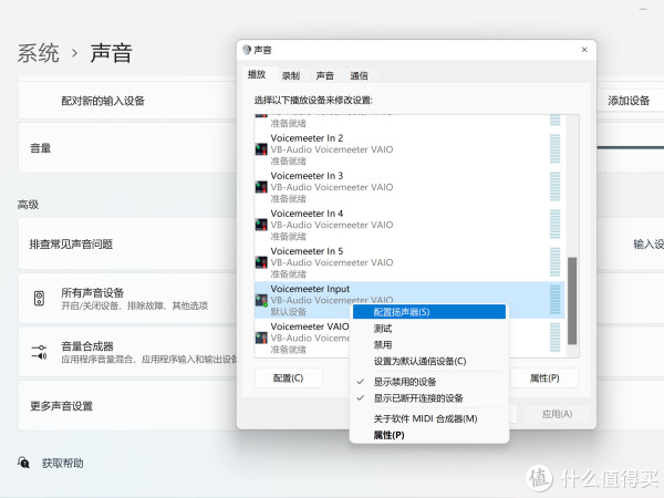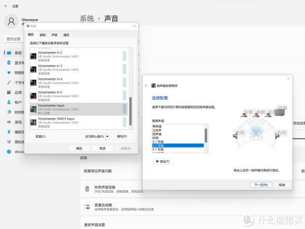 同时在更多声音设置选项里,配置Vociemeeter Input为5.1环绕音响系统。