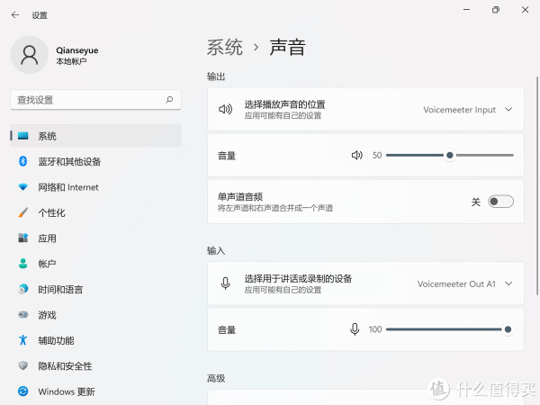 配置完成后,在Vociemeeter Input选项设定通道和相位。