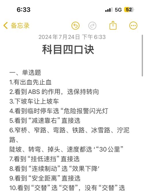 3、科四考完不能立即开车。具体原因如下:未获得正式驾照:虽然科目四考试是获取驾照的重要步骤,但仅通过科目四并不能立即获得驾驶执照。需要等待相关部门正式发放驾照后,才能合法上路。法律规定:根据《中华人民共和国道路交通安全法》第九十五条规定,上路行驶的车辆必须具备合法证件,包括驾驶证。