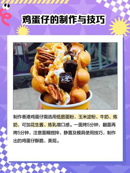 2、要使鸡蛋仔烤得脆,关键在于模子一定要烧热。具体制作时还需注意以下几点:模子预热:在挤入面糊之前,确保模子已经充分烧热,并均匀的刷上一层油,这样可以有效促进鸡蛋仔外皮变脆。