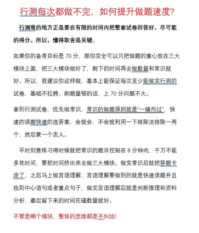 国考言语理解做题速度慢,可尝试以下策略提升速度:首先,要明确国考行测题目的特点,即在有限的时间内需要完成大量的题目。因此,提高做题速度是关键。