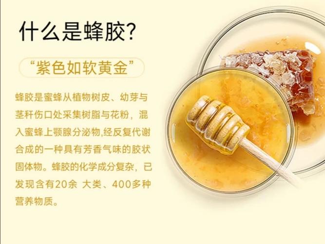 3、蜂胶的功效与作用: 蜂胶可以增强人体免疫力,因为蜂胶里面还有黄酮,可以增强吞噬细胞的能力,还可以杀伤细胞活性,所以对人体可以有抗病力与自愈力的功效。 蜂胶还具有消炎镇痛的作用,因为蜂胶里面含有消炎止痛止血以及防晒作用的黄酮类化合物,如果有人感到咽喉疼痛,就可以用开水泡服。