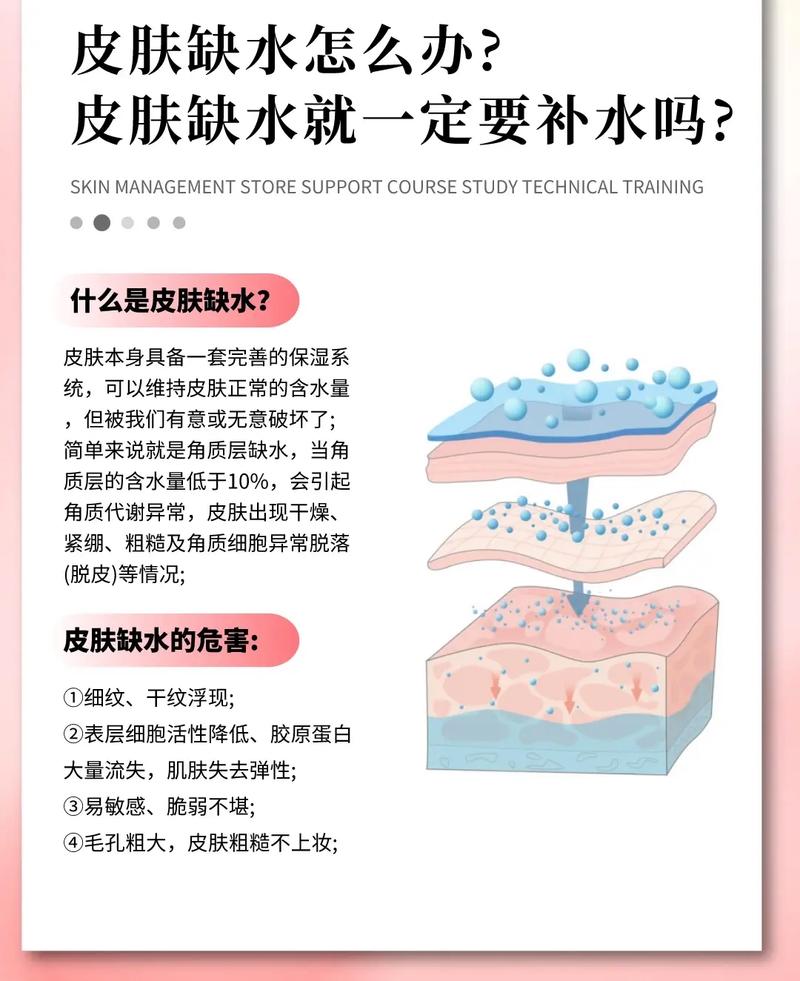 皮肤干燥缺水时,可通过饮水、保证睡眠、使用面膜和面霜、喷雾补水以及食疗等方式改善。以下是具体方法:基础补水方法饮水:每天饮用6-8杯白开水(牛奶、饮料不计入),避免口渴时才喝水,此时身体已处于缺水状态。睡眠:保证优质充足的睡眠,熬夜会直接导致皮肤干燥、暗沉,且无法通过后续补觉完全恢复。