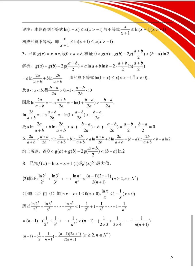 能利用拉格朗日中值定理证明的不等式通常具有一定的形式,比如不等式中含有明显形如“f(a)-f(b)”的部分(设ab),其中f(x)是某个我们熟悉的函数。